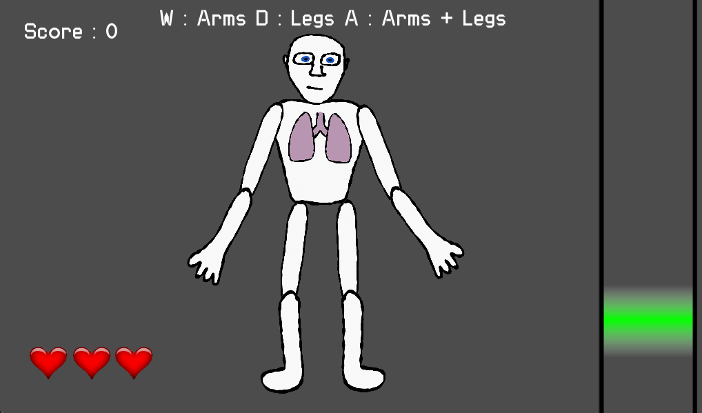 Use W:Arms, D:Legs and A: arms + Legs to get your work out in and expand those lungs. Just make sure you get the timing right!